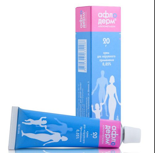 Медикаменты с умеренным терапевтическим эффектом. Например, Афлодерм, содержащий дипропионат алклометазона. Эта мазь несмотря на хороший фармакологический эффект имеет много противопоказаний. Продолжительность ее наружного использования не может превышать 3-х недель. Также в эту группу входит медикамент под названием Фторокорт, содержащий в своем составе ацетонид триамцинолона. Мазь обладает противоаллергическим и противовоспалительным действием. После начала ее применения пациенты отмечают быстрое устранение пузырьков, содержащих жидкость, а также уменьшение зуда. Курс терапии в большинстве случаев не превышает 10 суток, но при наличии показаний может увеличиваться до 25 дней.