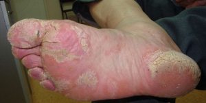 Ещё псориаз на ступнях ног осложняется естественным потоотделением. Пот, как всякая биологическая жидкость, является весьма благоприятной средой для патологической флоры, которая может стать причиной заражения стопы или всего организма.
